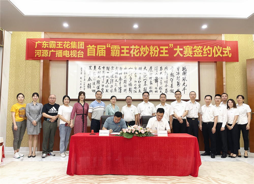 随后,广东霸王花集团副总裁兼财务总监朱利昀、河源广播电视台副台长刘志常代表双方签署“霸王花炒粉王”大赛协议。